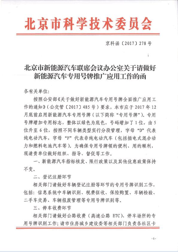 附件:《北京市新能源汽车联席会议办公室关于做好新能源汽车专用号牌推广应用工作的函》